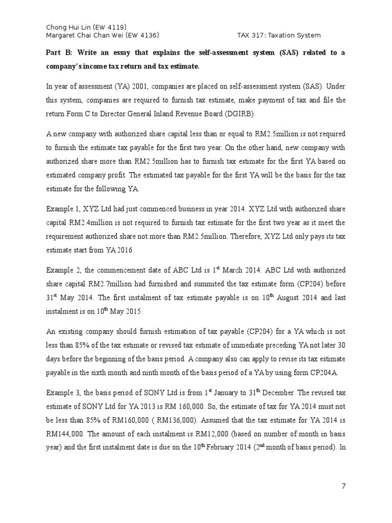 Under the self assessment system, every company is required to determine and submit in a prescribed form (form cp204) an estimate of its tax payable for a year of assessment, 30 days before the beginning of the basis how to calculate tax estimate for cp204?