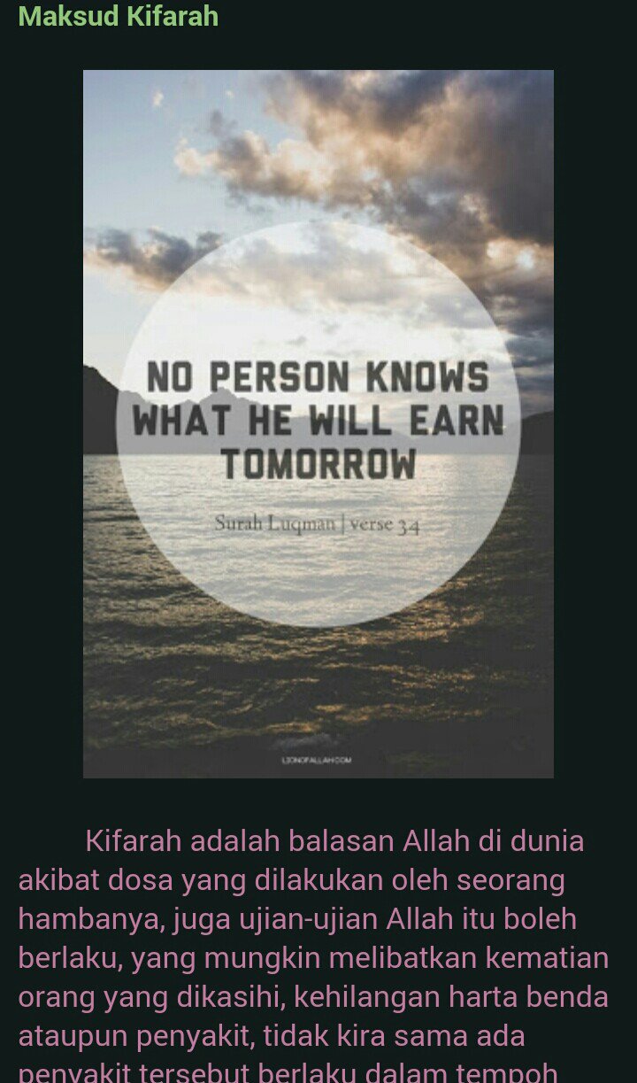 Buat baik balasan pasti baik begitu jualah sebaliknya sebab itu saya sangat takut kepada kifarah. Aku bukan anak yang … Kerana itu allah pisahkn awak daripada manusia yang trlibat dengan perbuatan terkutuk seperti itu. Kifarah dan karma itu wujud. 20 allah is the greatest ideas quran quotes islamic quotes islam. Jangan dikenang lagi lelaki tak berakhlak seperti itu. Kifarah media berkongsi ilmu agama, isu semasa dan petua berguna. Kifarah allah sy sedang lalui fasa 1 selepas cerai…. Apa yang ingin aku luahkan bukan berniat untuk memburukkan sesiapa atau membuka aib sesiapa. Untuk perkataan 'kifarah' mungkin boleh digunakan ketika mana ditimpa sesuatu musibah atau ujian dari allah. Ketahuilah, ada sebab kenapa allah swt memberikan ujian berupa musibah, keletihan, kegusaran, kesakitan sehingga duri yang menyucuk sekalipun dan sesuatu yang menganggu kehidupan. Karma dn kifarah itu adalah pengembalian semua di atas perbuatan yg jahat ataupun perkara yg tdk benar org lakukan pada diri kita,, apabila kita seumpama teraniaya dn kita percaya semuanya pasti berbalik. Kisah ini hanya diceritakan pada bahagian aku.